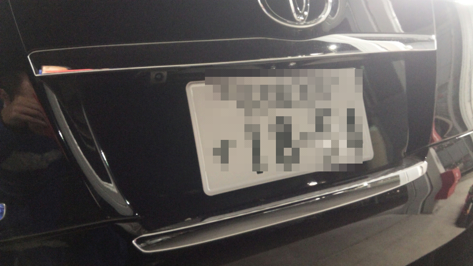 バックカメラは黒い車なのでわかりにくいかもしれませんが、純正位置に違和感なく取り付けました。